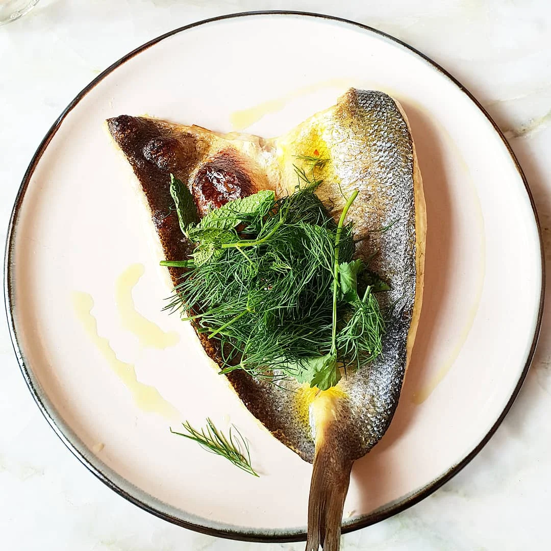 For mains, I had more seabass… with turmeric, lemon, mint and samphire as well as braised kale and sweet potato fries (not pictured). Mmm…
