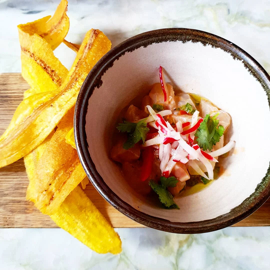 I went for a cured and raw seabass ceviche, datterini tomato, jolapeno and plantain chips… I actually chose this dish because of the plantain chips because plantain is bae). This dish had a great mix of textures.
